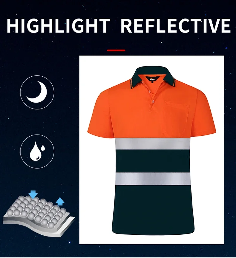 The shirt features high-contrast fluorescent color (Yellow or Orange) combined with reflective tape for enhanced visibility in both daylight and low-light conditions. Whether you're on a construction site, in traffic control, or working in a warehouse, this shirt keeps you seen and safe.